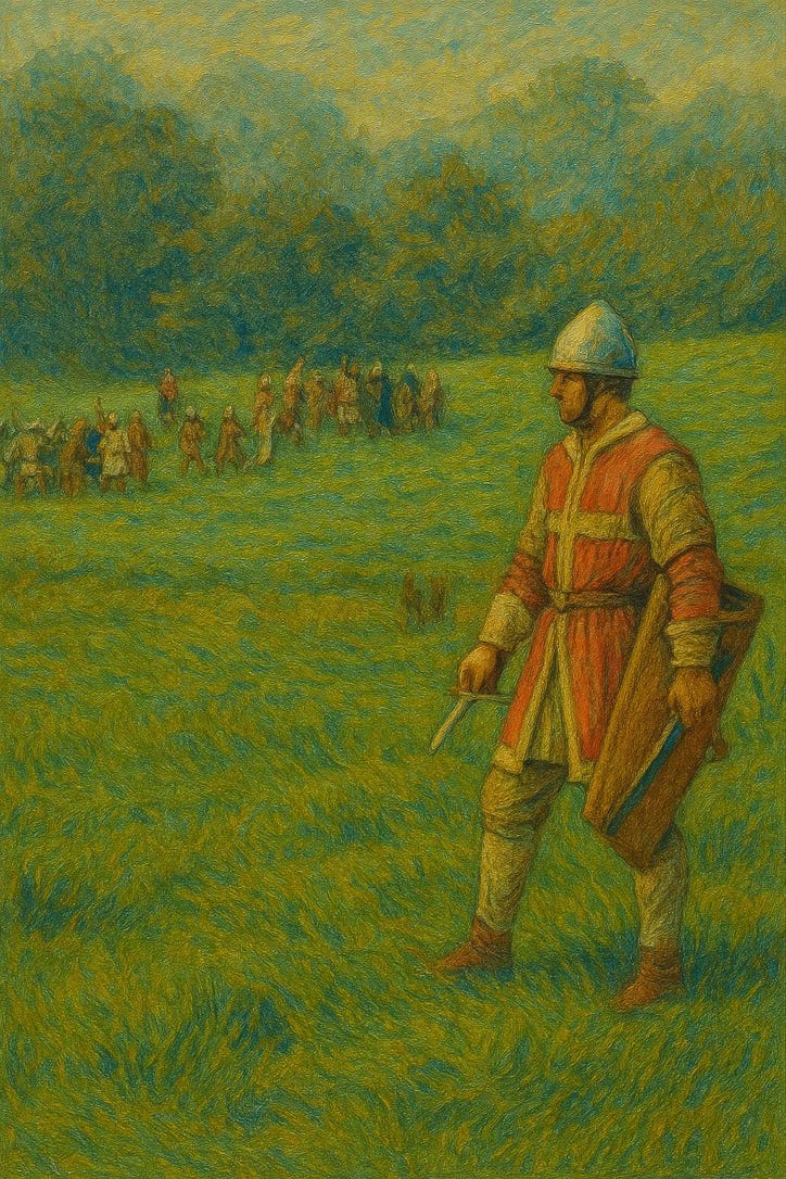 Hejyman and Eathel looked at their meager, foot-bound shield wall he’d had the men form up into minutes before. Some were still planting their feet and locking into place with their neighbors as the thunderhead of steel set its mind to wash over them like divine vengeance.